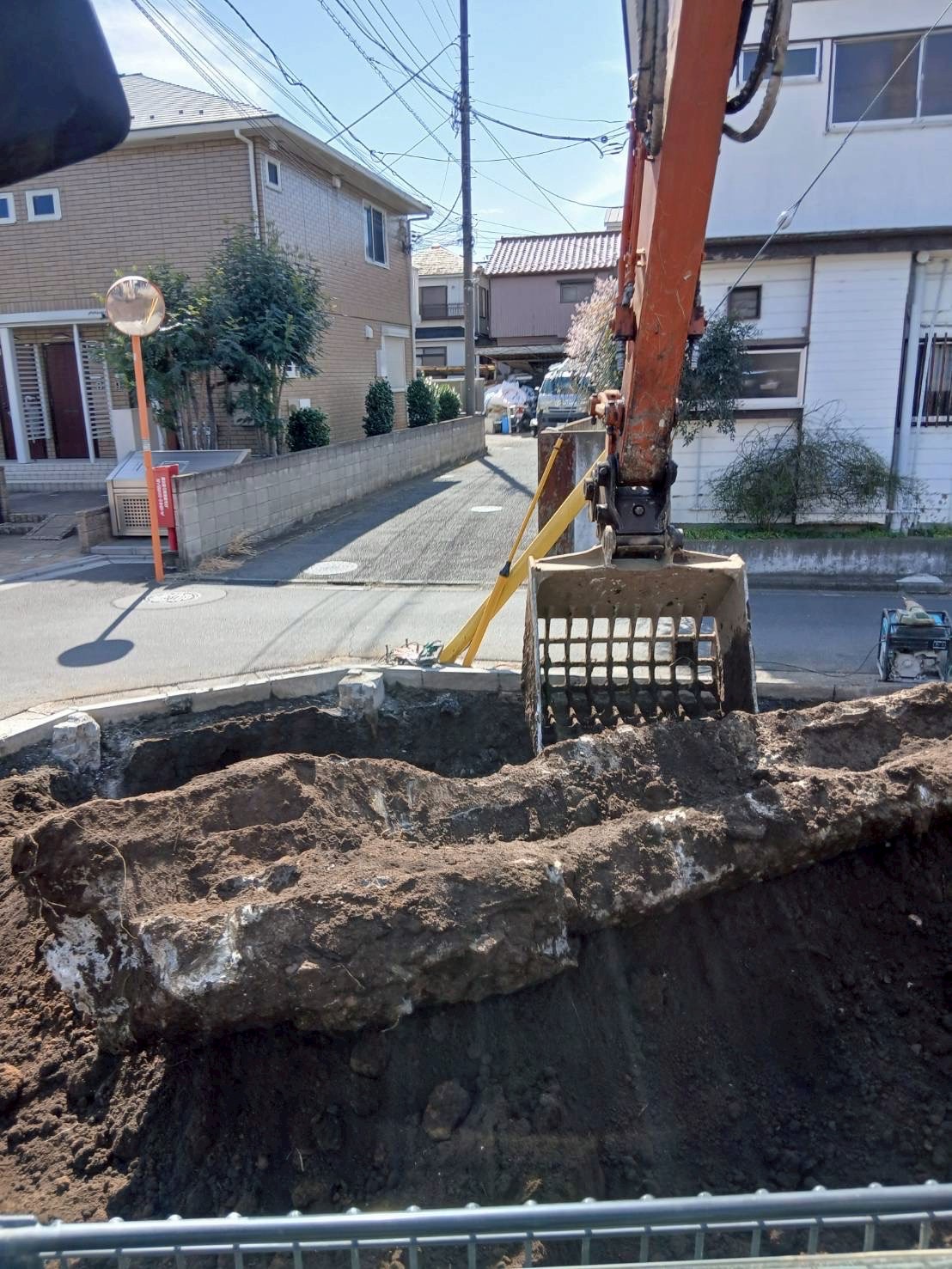 今回の現場では、外構の基礎が非常に頑丈に施工されていたため、通常よりも大きめの重機を使用して解体作業を行いました。