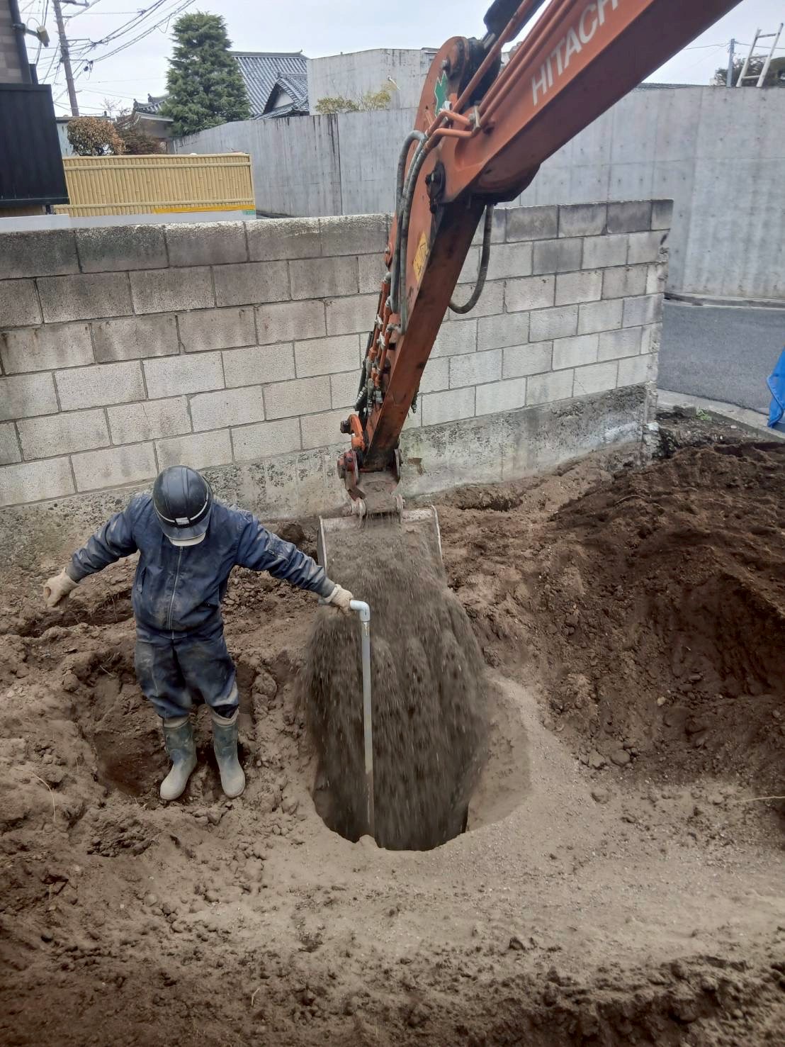 また、敷地内には井戸が残っていたため、適切な 息抜き処理(ガス抜き) を行ったうえで、砂による埋め戻し工事を実施しました。